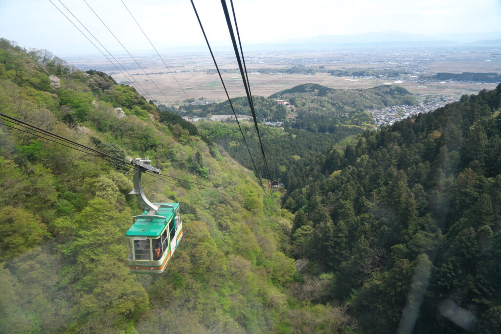 続いて弥彦山ロープウェイとクライミングカーを利用し山頂へ。越後平野を一望できる絶景を楽しむことができました。