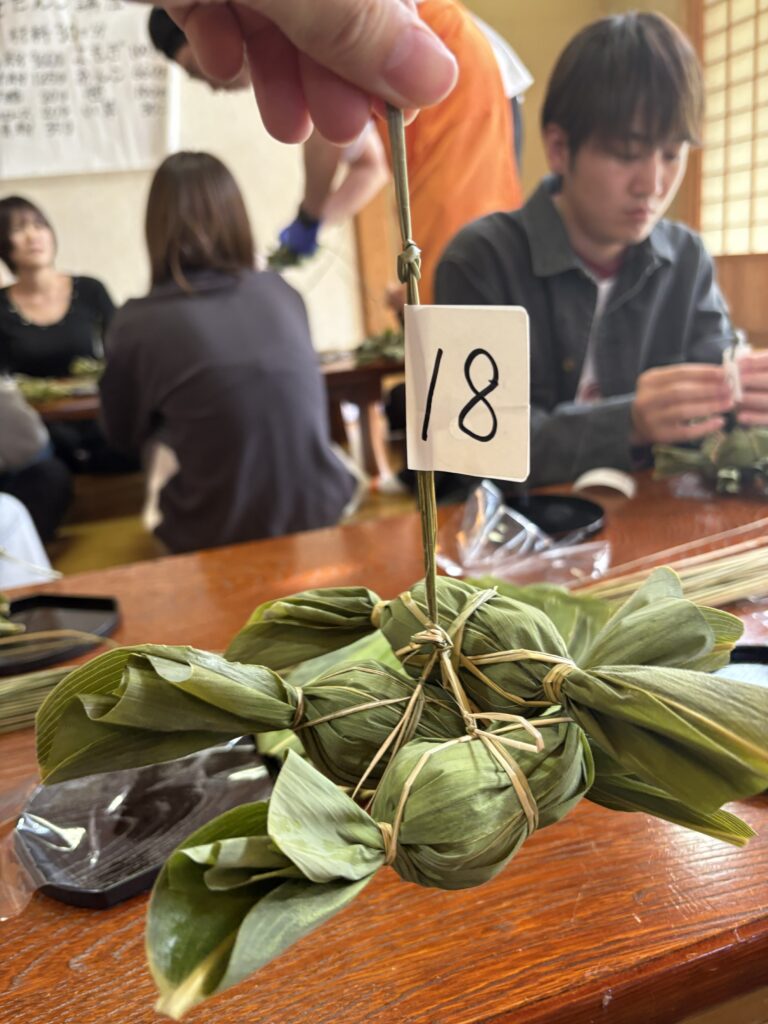 その後は新潟ふるさと村へ移動し、「笹団子作り体験」を実施。地元の老舗「田中屋本店」のスタッフの方にご指導いただきながら、参加者それぞれが笹の香りに包まれた手作り体験を楽しみました。